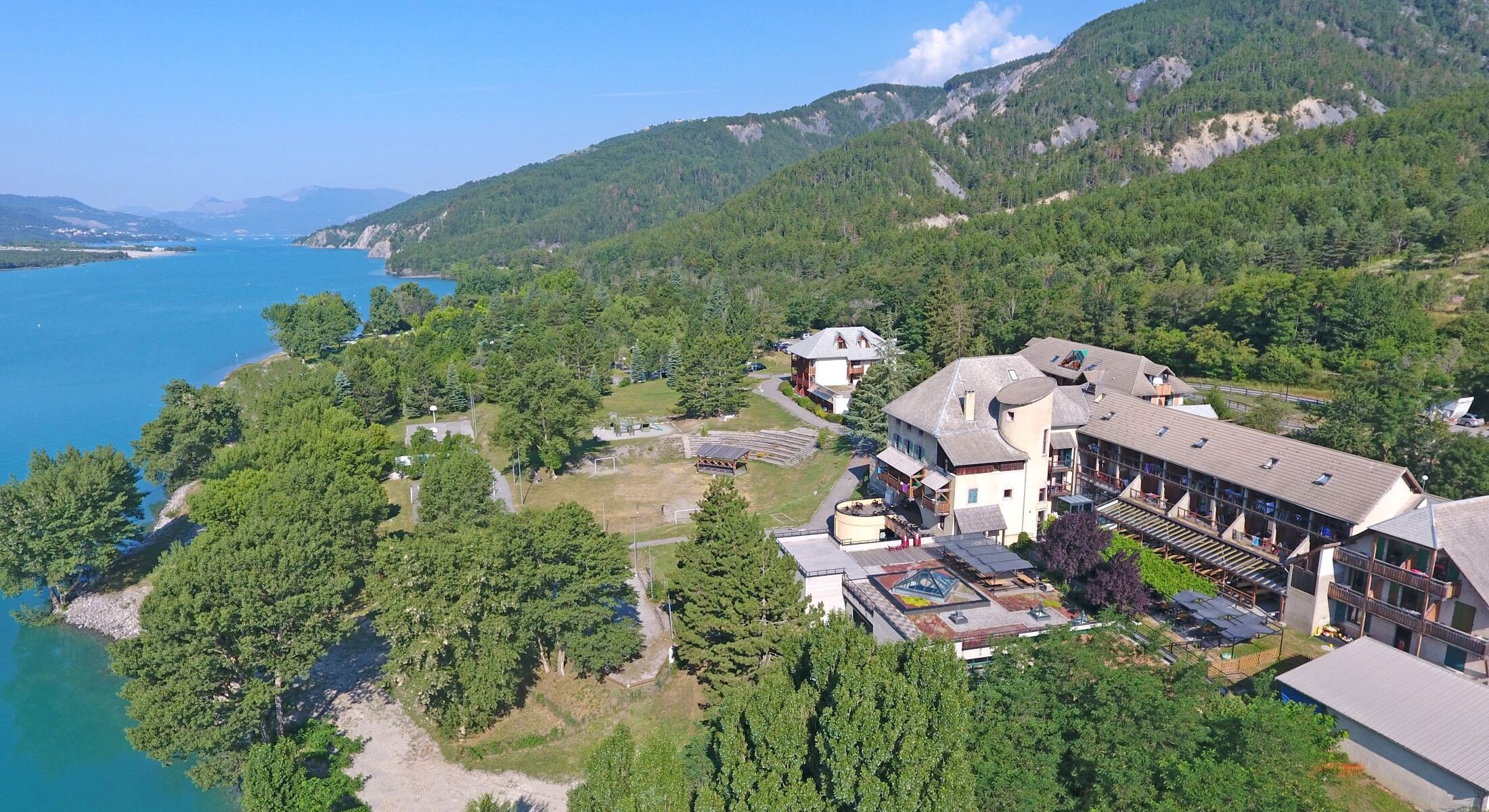 It is in this unique “sea in the mountains” setting that Chadenas & Spa is located. Set in 9 hectares on the lakeshore, the property offers 70 comfortable 2-star rooms, a restaurant, an indoor pool with spa (sauna and jacuzzi), and numerous facilities for family, solo, or group stays.