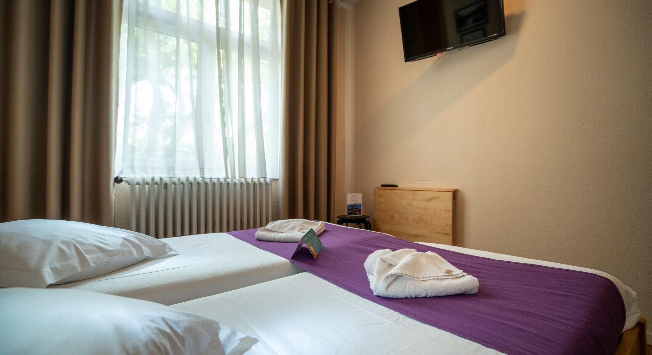 About 16m², located in a large building. Each room features 2 single beds, a bathroom with a bathtub, and a separate toilet. TV provided in every room. Pets are not allowed. No Wi-Fi connection available.