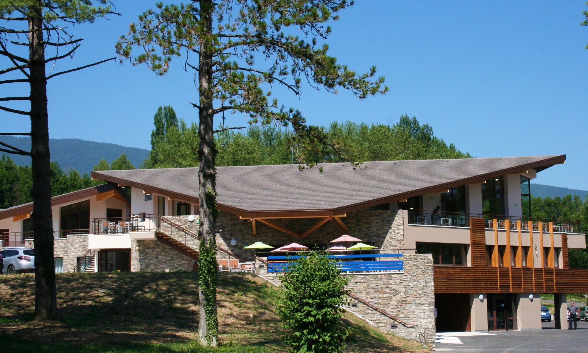 Hotel located on the shores of Lake Annecy, in a 5-hectare park along the cycling path linking Annecy to Albertville, just 12 km from Annecy’s old town. Numerous activities are available year-round: hiking, mountain biking, water sports, skiing… Outdoor pool, spa, entertainment, and themed evenings during summer holidays. Double and family rooms, panoramic restaurant.