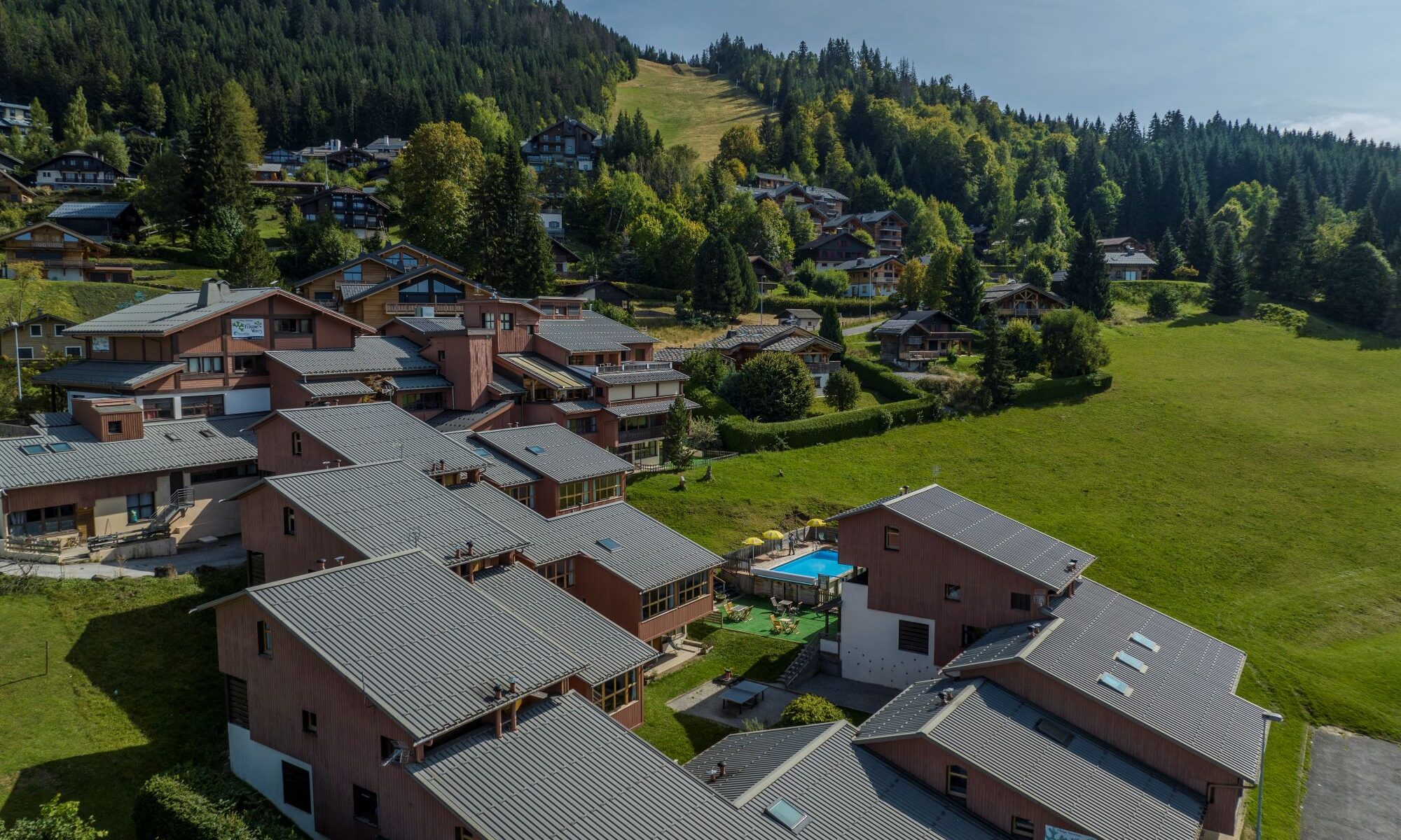 Hotel located at the foot of the slopes in the Grand Massif ski area at Les Carroz d’Arâches. This charming Savoyard property offers rooms for 4 to 9 people, a restaurant, a bar, a ski shop, secure covered parking, a sauna, an outdoor heated pool in summer, and activities and kids’ clubs during the winter holidays.