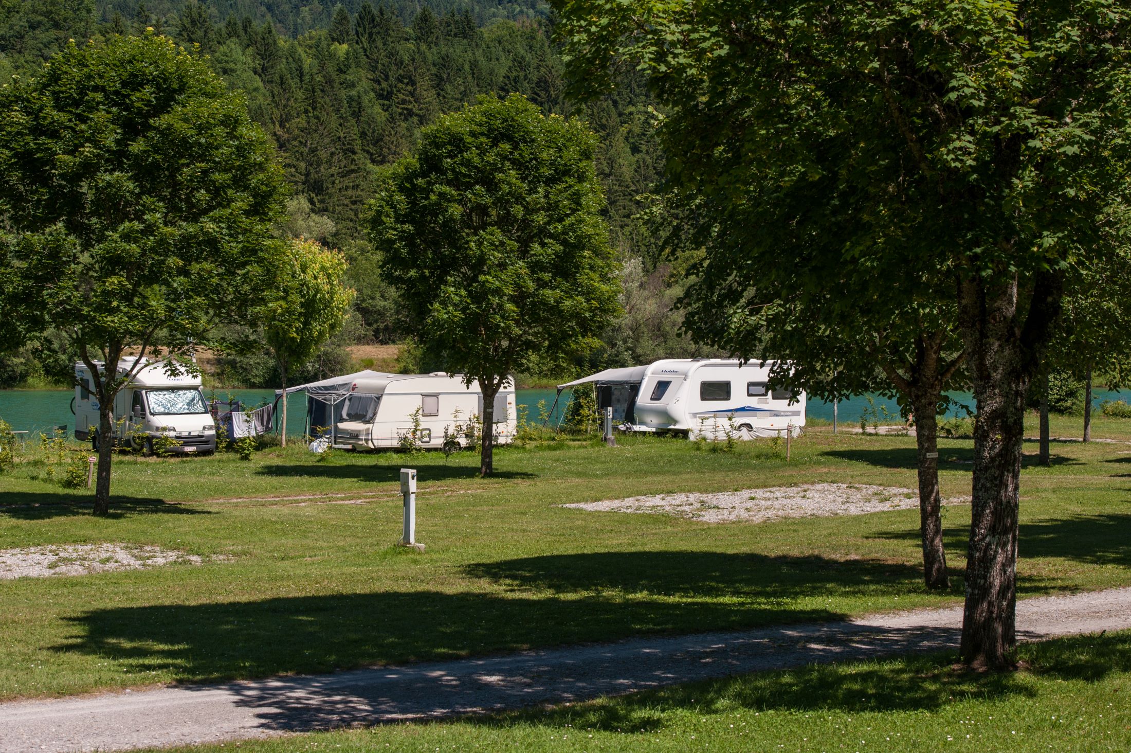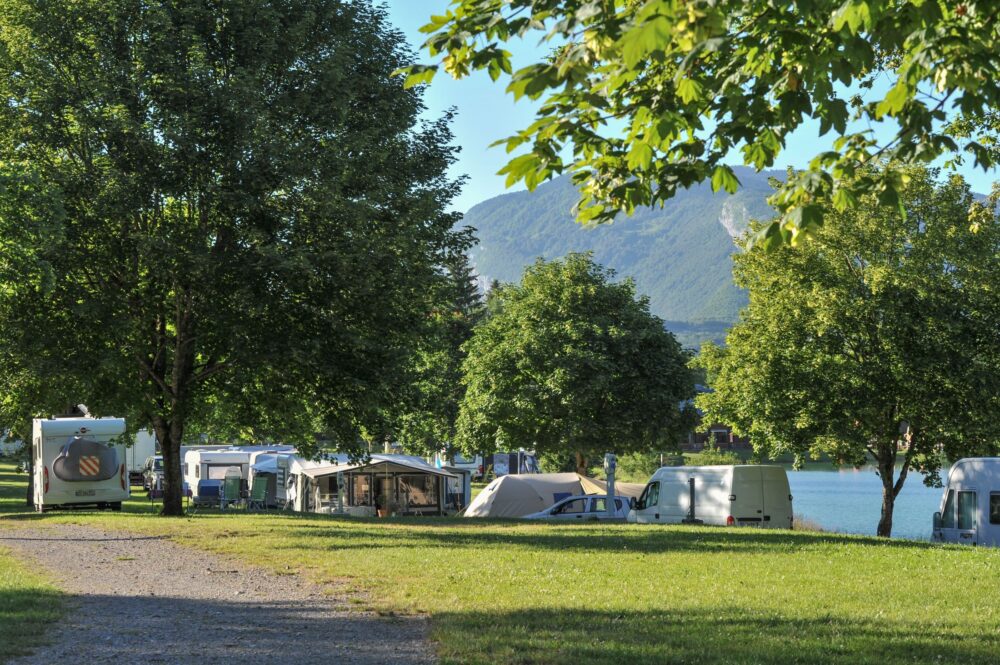 Le camping 3 étoiles de L’Île du Chéran est aménagé dans un écrin de nature, sur la rive d’un plan d’eau, en bord de forêt, au pied de la montagne. Dans ce cadre somptueux du massif des Bauges, la nature se révèle agréable. Vous pourrez profiter d’emplacements verdoyants, ombragés et spacieux de plus de 80m² en moyenne pour y installer votre tente, caravane ou camping-car.
